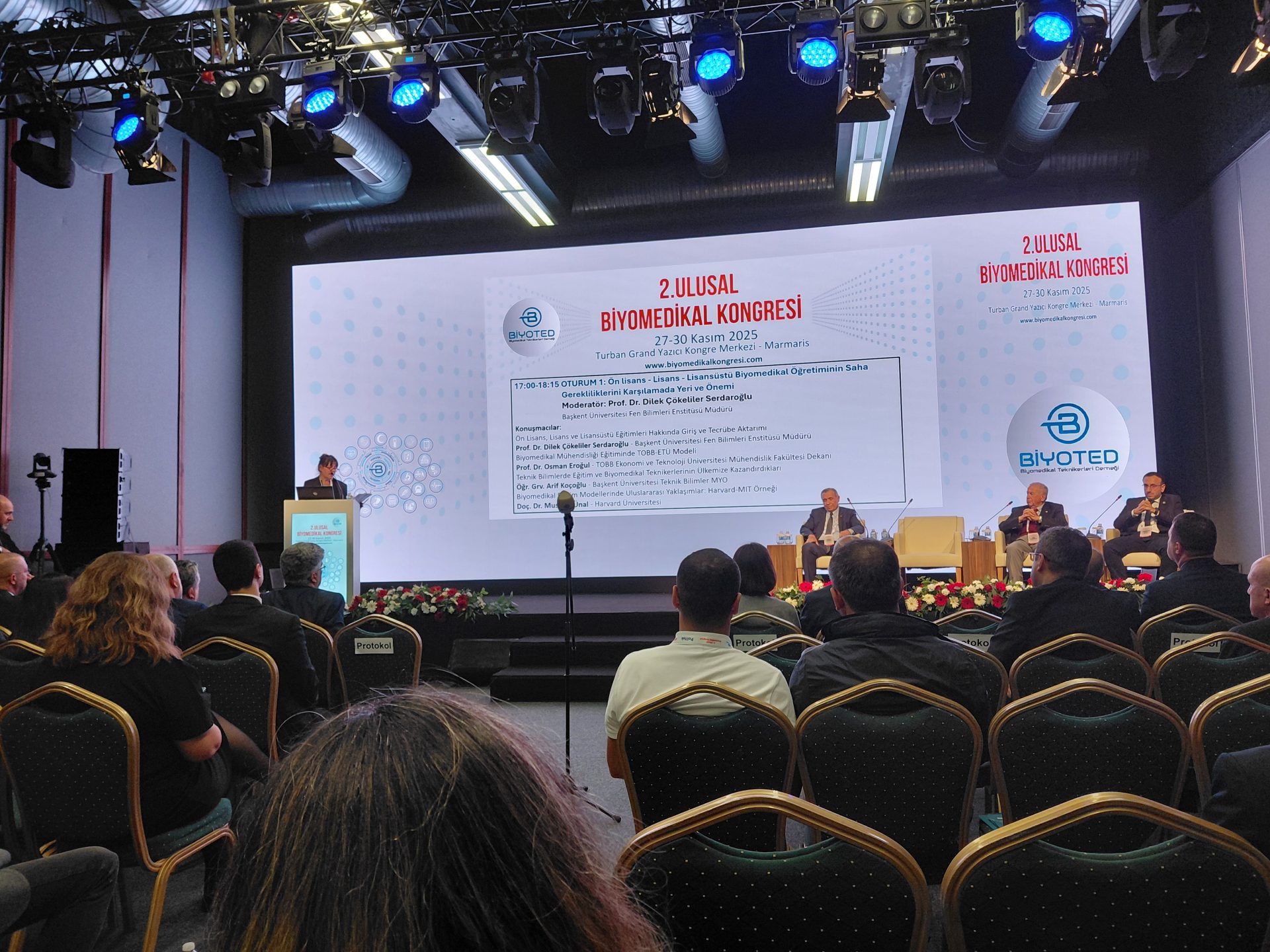 Biyoted Başkanı Ufuk Karanfil de konuşmasında, “2.Ulusal Biyomedikal Kongresi’nde sizleri aramızda görmekten mutluluk duyduğumuzu belirtmek isterim. Birincisi büyük bir başarıyla tamamlanan kongremiz, biyomedikal alanında bilgi paylaşımını ve bilimsel işbirliklerini geliştirme amacına ulaşmış ve bu alandaki ilerlemelere katkı sağlamıştır. Bu başarıdan sonra, 2. Ulusal Biyomedikal Kongresi’ni daha da zenginleştirdik. Kongremiz, biyomedikal mühendislik, tıbbi cihazlar, biyoteknoloji, sağlık teknolojileri ve ilgili diğer disiplinlerdeki en son gelişmeleri keşfetmek ve tartışmak için benzersiz bir platform sunmaktadır. Alanında uzman konuşmacılar, akademisyenler, araştırmacılar ve sektör profesyonelleriyle birlikte gerçekleştireceğimiz etkinlik, bilimsel etkileşim, bilgi alışverişi ve yenilikçi fikirlerin ortaya çıkması açısından büyük bir fırsat olacaktır. Programda yer alan oturumlar, paneller, seminerler, kurslar ve sosyal etkinliklerle, katılımcılar arasında verimli bir etkileşim sağlanması amaçlanmaktadır” dedi. Karanfil sözlerini, “Doğrudan insan hayatına dokunarak onlara anlamlı bir katkı sunuyoruz. Ülkemizde biyomedikali sağlam temeller üzerine kurmak istiyoruz” diyerek tamamladı.