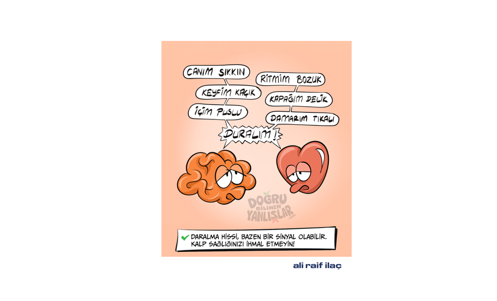 Kalp sağlığı alanındaki 60 yıllık güçlü birikimi ile Ali Raif İlaç, projeye koşulsuz destek veriyor. Sağlık Bilimleri Üniversitesi İstanbul Haseki Eğitim ve Araştırma Hastanesi Kardiyoloji Anabilim Dalı Öğretim Üyesi ve Klinik Şefi Prof. Dr. Erdal Belen’in bilimsel danışmanlığında hazırlanan projede, kalp sağlığıyla ilgili yanlış inanışlar mizahın gücüyle ele alınıyor. Her bir karikatür yerleşik kanıları sorgulatırken, bilimsel makale yanlış bilgiye açıklık getiriyor. Kalp krizi belirtilerinden aşılara, tansiyon ve kolesterolde ilaç reddinden tetkik yöntemlerine, genç hastalardaki risk faktörlerinden spora kadar pek çok konu “doğru” ve “yanlış” olarak değerlendiriliyor.
