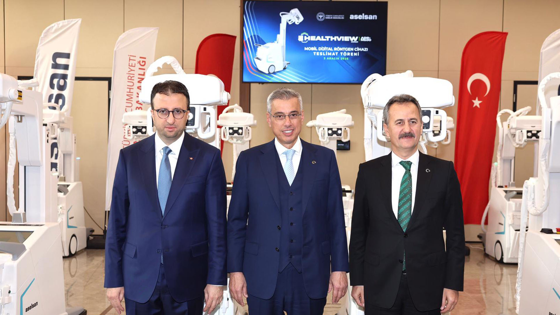 Sağlık Bakanı Prof. Dr. Kemal Memişoğlu ve Savunma Sanayii Başkanı Prof. Dr. Haluk Görgün’ün katılımlarıyla 30 adet ASELSAN HealthView ADR-M100 Mobil Dijital Röntgen Cihazının teslimatı yapıldı.