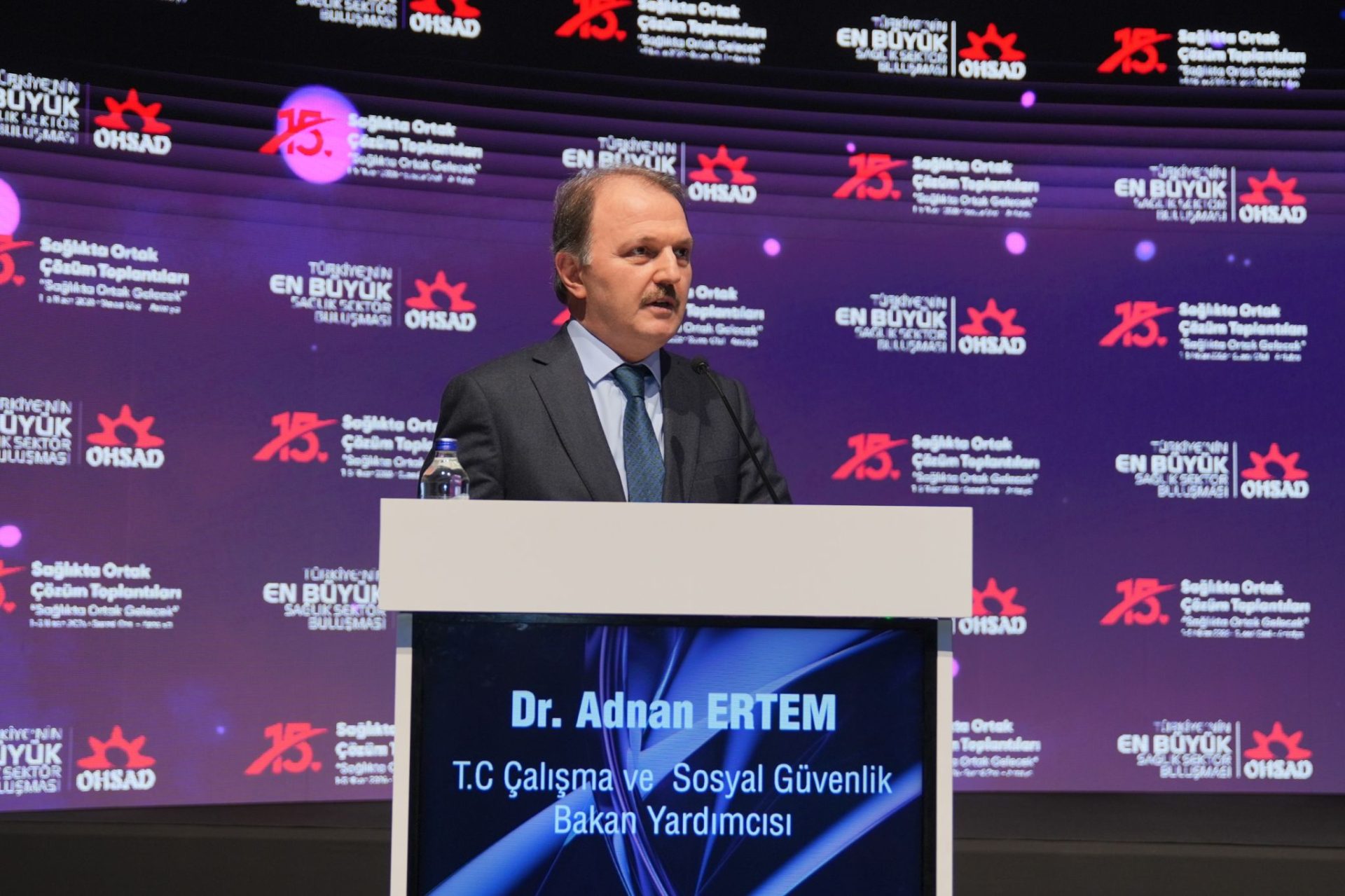 Çalışma ve Sosyal Güvenlik Bakan Yardımcısı Dr. Adnan Ertem de sağlığa ayrılan payın artırılması gerektiğini söyledi. Sağlık hizmetinden istifade edenlerin sayısının her geçen gün arttığını dile getiren Ertem, “Nüfus yaşlanıyor, sağlık hizmetine ihtiyaç daha fazla oluşuyor, alışkanlıklarımız değişiyor. Sağlık hizmeti sunumunda çağın gereklerine uygun olarak çeşitlenme de olabiliyor” diye konuştu. Özel sağlık alanındaki sorunların çözümü için tarafların bir araya gelmesinin, işbirliğinin önemli olacağına işaret eden Ertem, herkesin üzerine düşen konular olduğunu kaydetti.