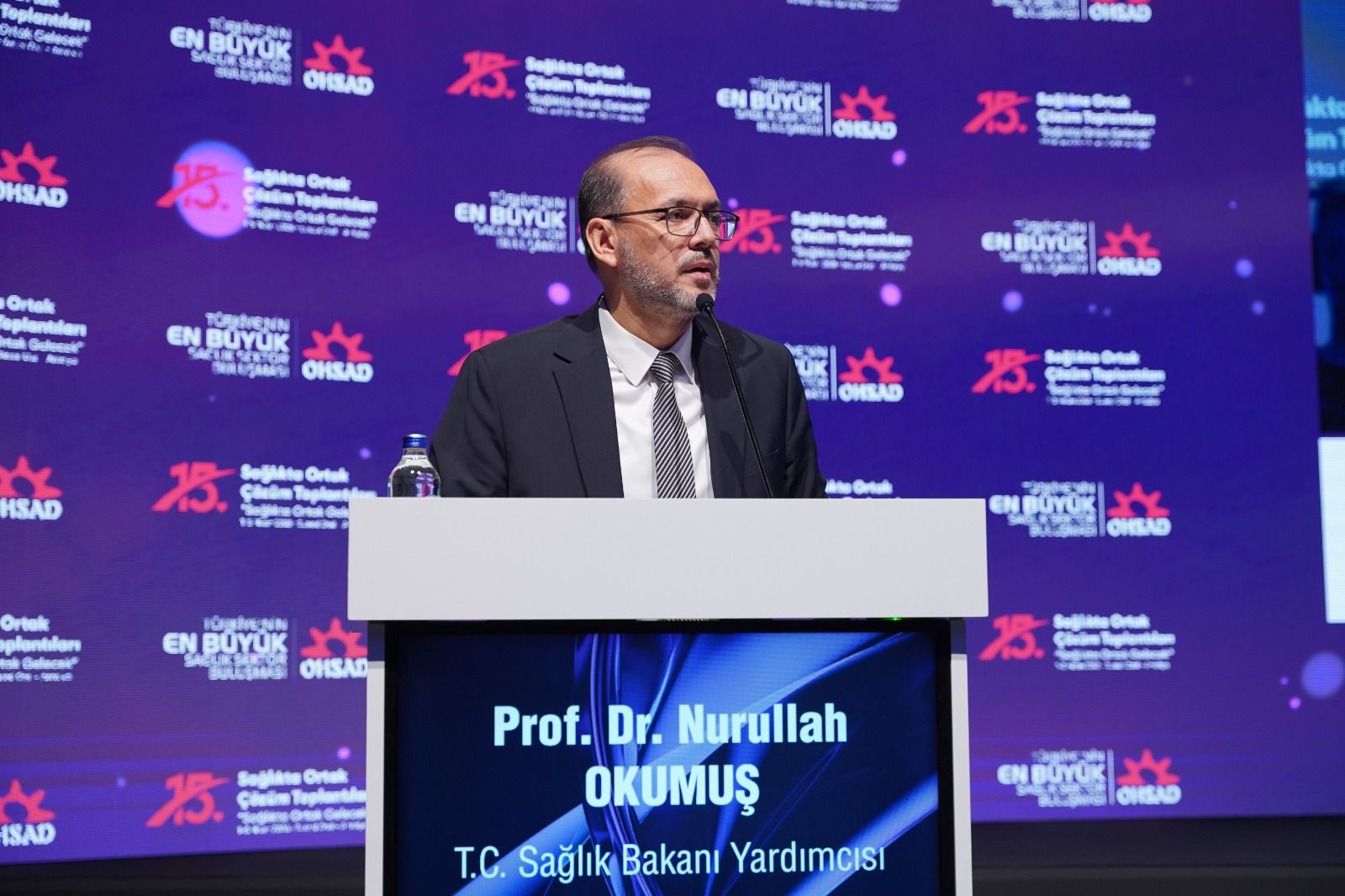 Sağlık Bakan Yardımcısı Nurullah Okumuş, sağlıkta sadece hizmet sunan değil, koruyan, üreten geliştiren Türkiye hedefi üzerine çalıştıklarını belirterek, 85 milyon vatandaşa hizmet vermeye devam etiklerini söyledi. Sağlık sektörünün çok kapsayıcı, dünyada başarısıyla örnek olduğunu anlatan Okumuş, özel sektörün her zaman kamuya çok ciddi katkı sunduğunu kaydetti. Okumuş, son 20 yılda ülkede sağlık alanında yapılan hizmetlerle sağlığa erişimin, kalitenin ciddi oranda arttığını vurgulayarak, özel sektörün özellikle sağlık turizmi konusunda daha proaktif olduğunu ifade etti. Özel sektörün teknolojiye adaptasyonda önemli olduğunu anlatan Okumuş, yeni teknolojileri ilk özel sektörde gördüklerini belirtti.