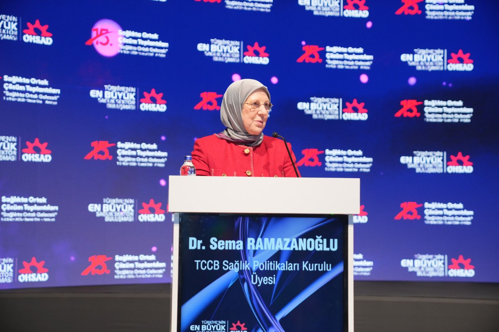 Cumhurbaşkanlığı Sağlık Politikaları Kurulu Üyesi Dr. Sema Ramazanoğlu da kurultayın açılışında yaptığı konuşmada, toplantının kamu, üniversite, özel sektör başta olmak üzere önemli paydaşları olduğunu söyledi. Sorunların görmezden gelinip, halının altına süpürülmediğini belirten Ramazanoğlu, 2010 yılına kadar dijitalleşmeyle sağlıkta dönüşüm ve büyük yenilenmenin sağlandığını kaydetti. Artık dünyada, sosyal pozisyonların, ekonominin, nüfus yapısının değiştiğine vurgu yapan Ramazanoğlu, salgın sonrası sağlıkla, hayatla ilgili algıların, düşüncelerin, pratiklerin de değiştiğine değindi. Her alanda değişim yaşandığını ifade eden Ramazanoğlu, “Bütün değişen dünya şartları içerisinde, artık bizim sağlıkta yeni bir hikaye yazmamız gerekiyordu. Bu hikayenin bir vizyonu, iç teması olacak. Bu hikayenin yeni planı, programı olacak. Yoksa biz artık eski programla eski araçlarla başka yere gitmenin imkânsız olduğunu görüyoruz.” diye konuştu. Ramazanoğlu, artık bütünsel değişimi yapmak zorunda olduklarını, içerisinde kamu, özel sektör ve üniversitenin olduğu yeni bir planlamanın, rol dağılımının olması gerektiğini dile getirdi.