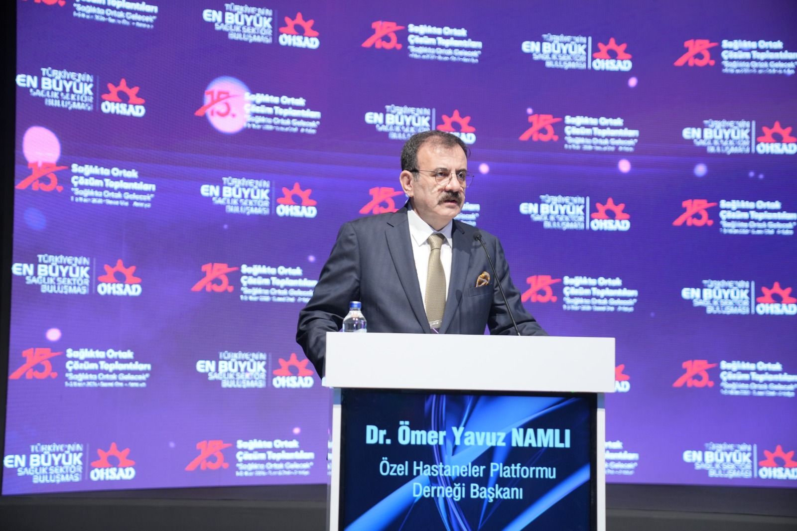 Özel Hastaneler Platformu Derneği Başkanı Dr. Ömer Yavuz Namlı da konuşmasında; SUT fiyatlarının reel olarak erimesi, geri ödeme ile maliyetler arasındaki ciddi uyumsuzluk, yoğun bakım hizmetlerinde yaşanan faturalandırma ve denetim sorunları, hekim ve sağlık personeli temininde yaşanan zorluklar, kadro planlamasına ilişkin yapısal kısıtlar ve lisans süreçlerindeki belirsizlikler başta olmak üzere sektörün temel sorun başlıklarını detaylı şekilde anlattı.
