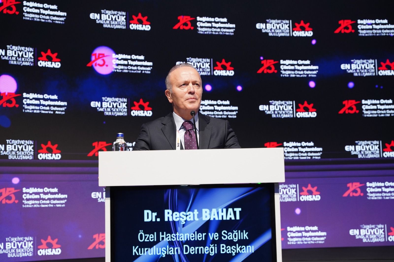 OHSAD Başkanı Dr. Reşat Bahat yaptığı açılış konuşmasında verdikleri sağlık hizmetinde vatandaştan aldıkları ücrette yüzde 200’lük kısıtlamasının kalkmasını istedi.