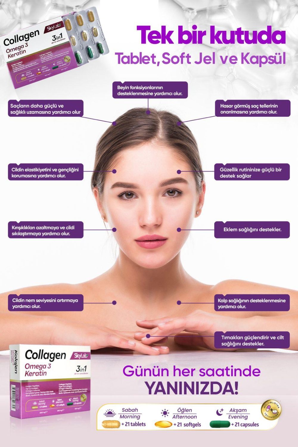 “Kurulduğumuz günden bu yana hedefimiz, modern yaşamın getirdiği stres ve dengesizliklere karşı vücudu içeriden destekleyerek, herkesin kendini daha enerjik, sağlıklı ve özgüvenli hissetmesini sağlamak. Skylab 3’lü Formül serimiz; kolajen, Omega-3 ve Biotin başta olmak üzere cilt, saç, bağışıklık ve sindirim sağlığını hedef alan güçlü içeriklerle formüle edilmiştir.”