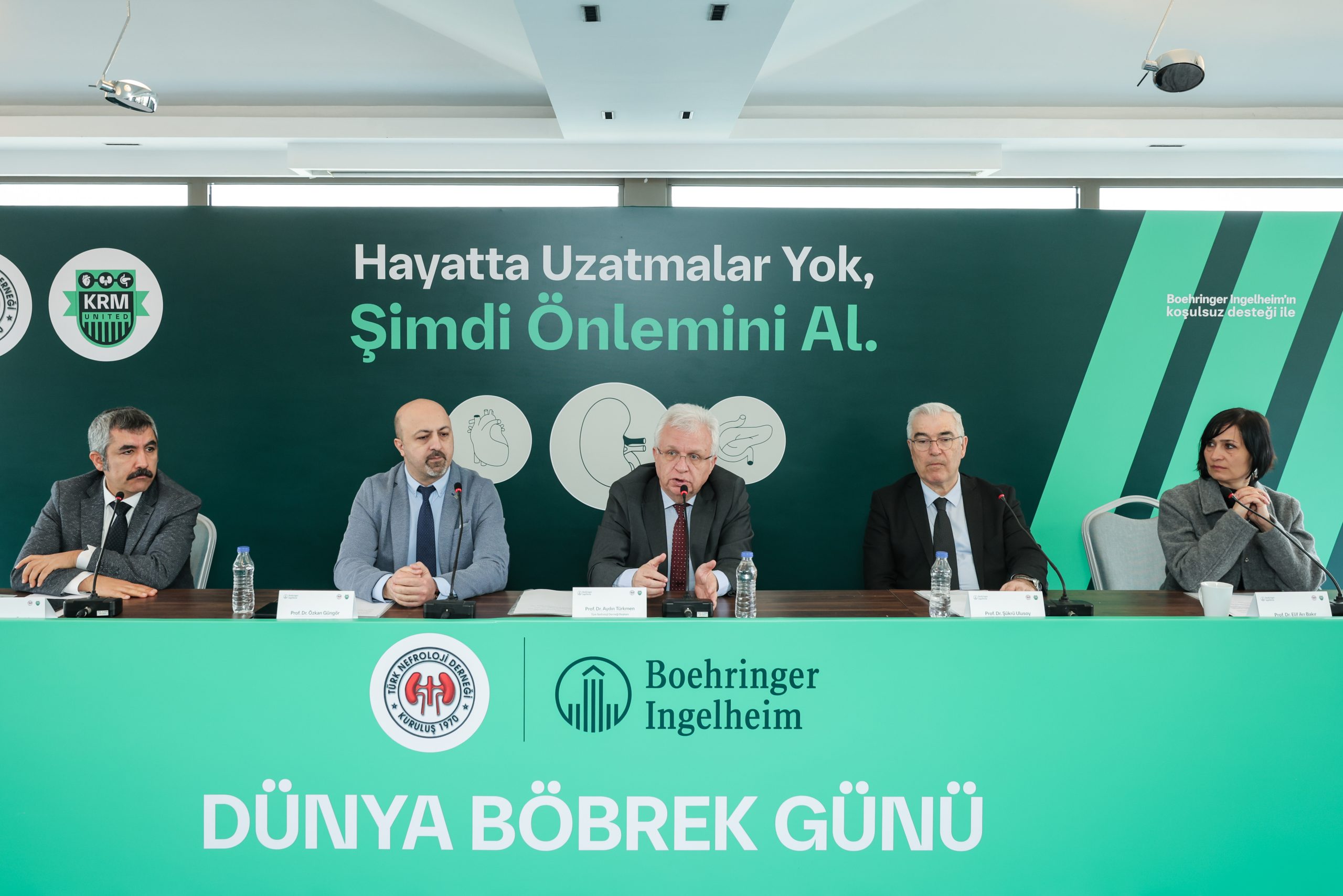 “Hayatta Uzatmalar Yok, Şimdi Önlemini Al” temasıyla gerçekleştirilen basın toplantısı; Türk Nefroloji Derneği Başkanı Prof. Dr. Aydın Türkmen ve derneğin yönetim kurulu üyelerinin katılımıyla, Boehringer Ingelheim Türkiye’nin koşulsuz katkılarıyla düzenlendi. Toplantıda kronik böbrek hastalığına ilişkin toplumsal farkındalığın artırılması, hastalığa yol açan risk faktörleri ve erken tanının böbrek fonksiyonlarını korumadaki kritik rolü hakkında bilgiler paylaşıldı.